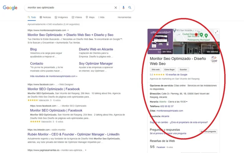 Te pongo un ejemplo, si pongo Monllor Seo Optimizado en Google, esto es lo que aparece.